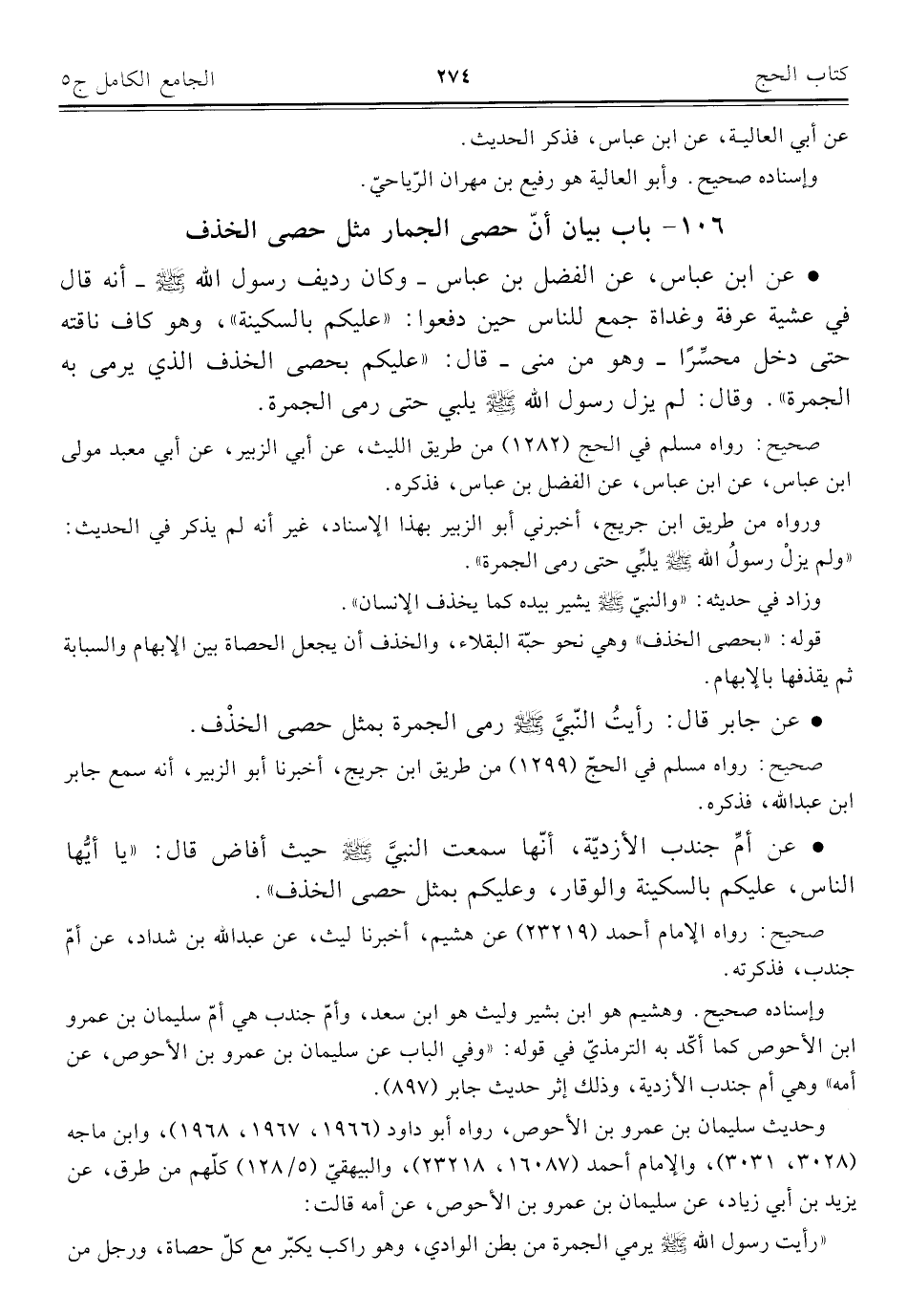 ١٠٦ - باب بيان أنّ حصى الجمار مثل حصى الخذف