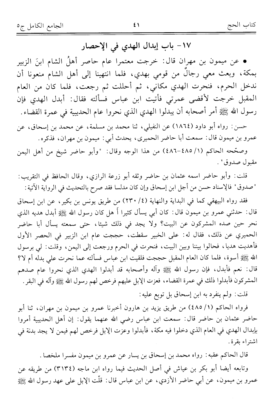 كتاب الجامع الكامل في الحديث الصحيح الشامل المرتب على أبواب الفقه (اسم الجزء: 5)