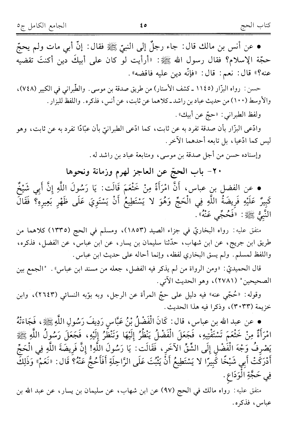كتاب الجامع الكامل في الحديث الصحيح الشامل المرتب على أبواب الفقه (اسم الجزء: 5)