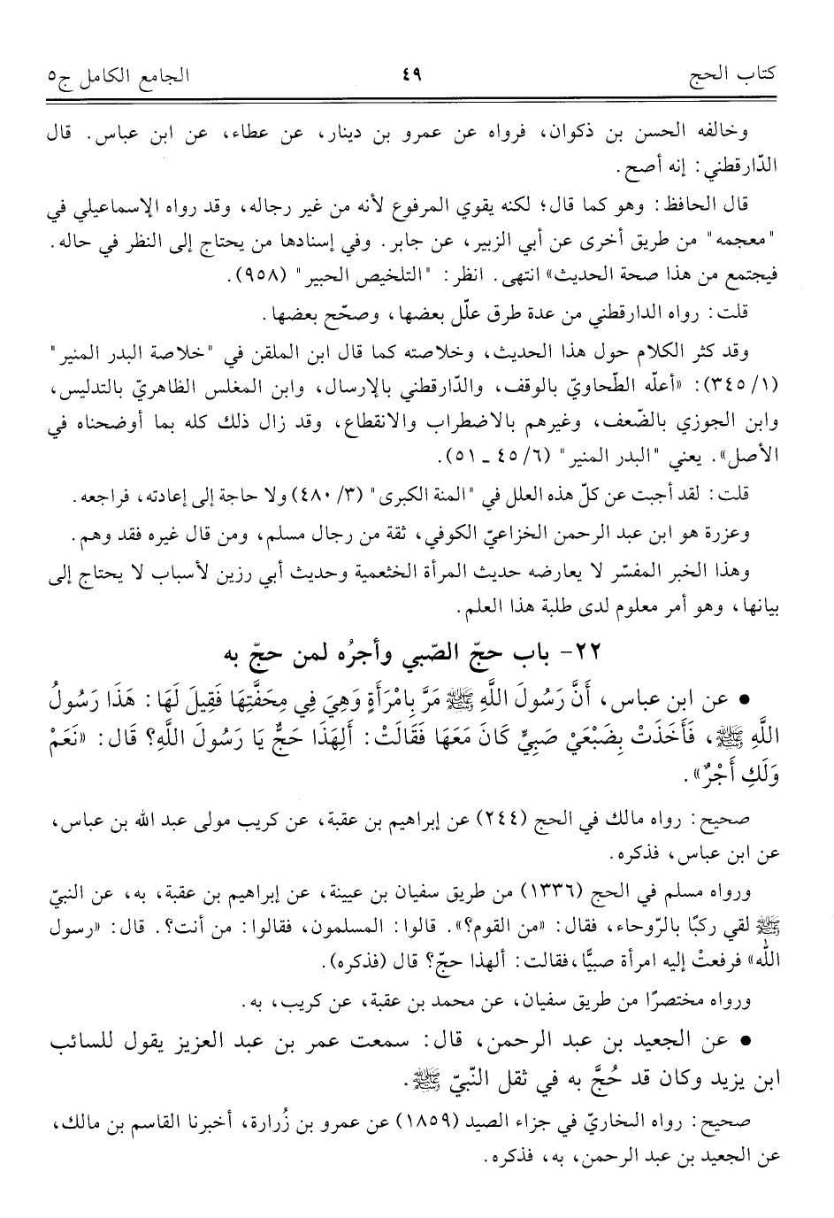 كتاب الجامع الكامل في الحديث الصحيح الشامل المرتب على أبواب الفقه (اسم الجزء: 5)