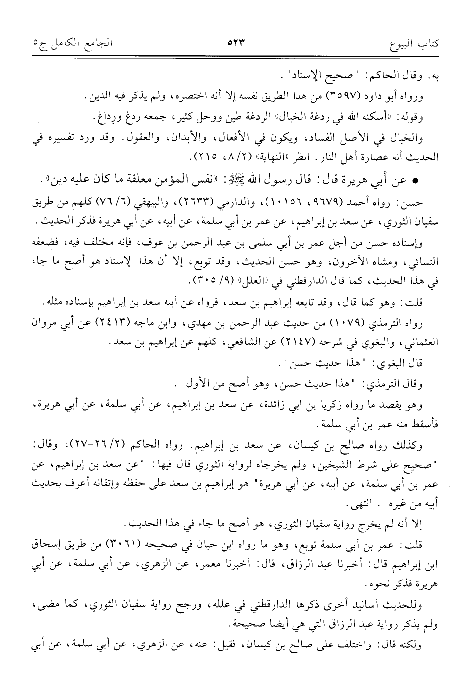 كتاب الجامع الكامل في الحديث الصحيح الشامل المرتب على أبواب الفقه (اسم الجزء: 5)