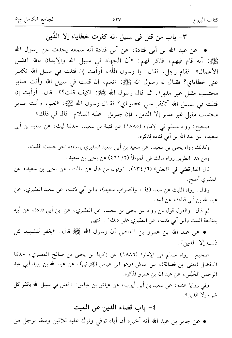 ٣ - باب من قتل في سبيل اللَّه كفرت خطاياه إلا الدَّين