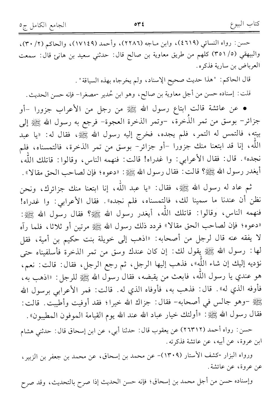 كتاب الجامع الكامل في الحديث الصحيح الشامل المرتب على أبواب الفقه (اسم الجزء: 5)