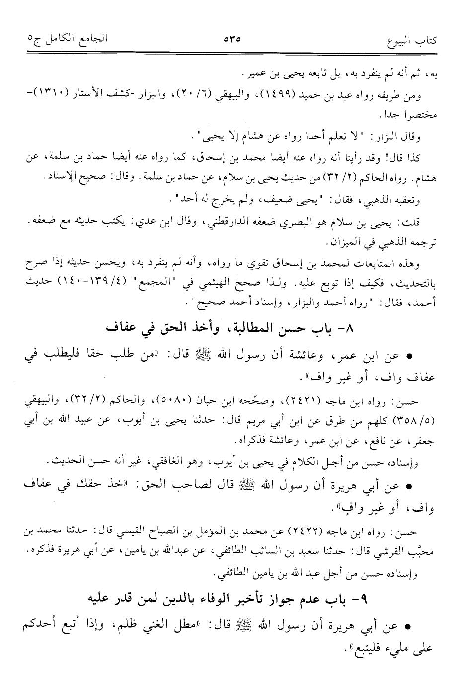 كتاب الجامع الكامل في الحديث الصحيح الشامل المرتب على أبواب الفقه (اسم الجزء: 5)