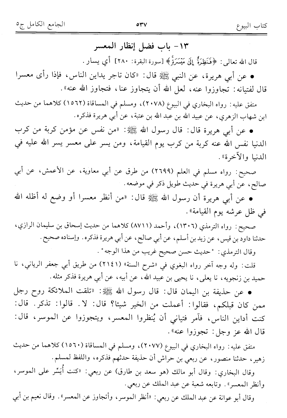 كتاب الجامع الكامل في الحديث الصحيح الشامل المرتب على أبواب الفقه (اسم الجزء: 5)