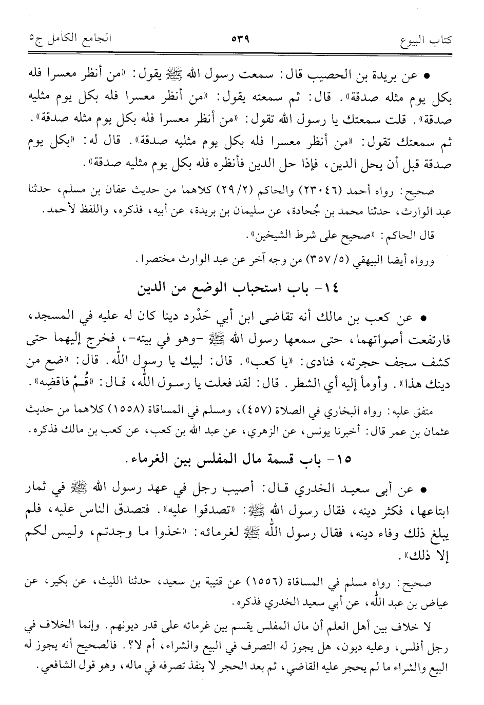 كتاب الجامع الكامل في الحديث الصحيح الشامل المرتب على أبواب الفقه (اسم الجزء: 5)