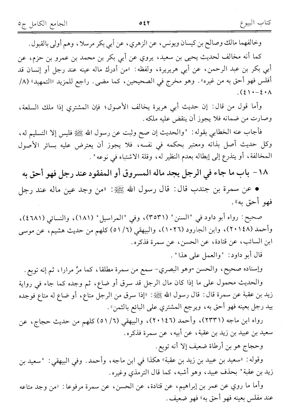 كتاب الجامع الكامل في الحديث الصحيح الشامل المرتب على أبواب الفقه (اسم الجزء: 5)