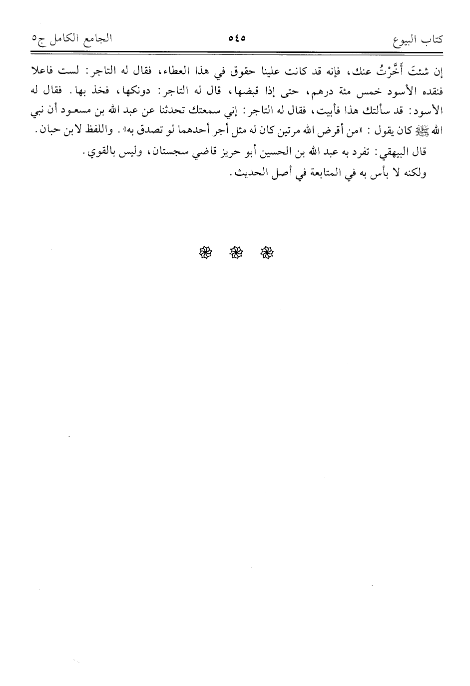 كتاب الجامع الكامل في الحديث الصحيح الشامل المرتب على أبواب الفقه (اسم الجزء: 5)