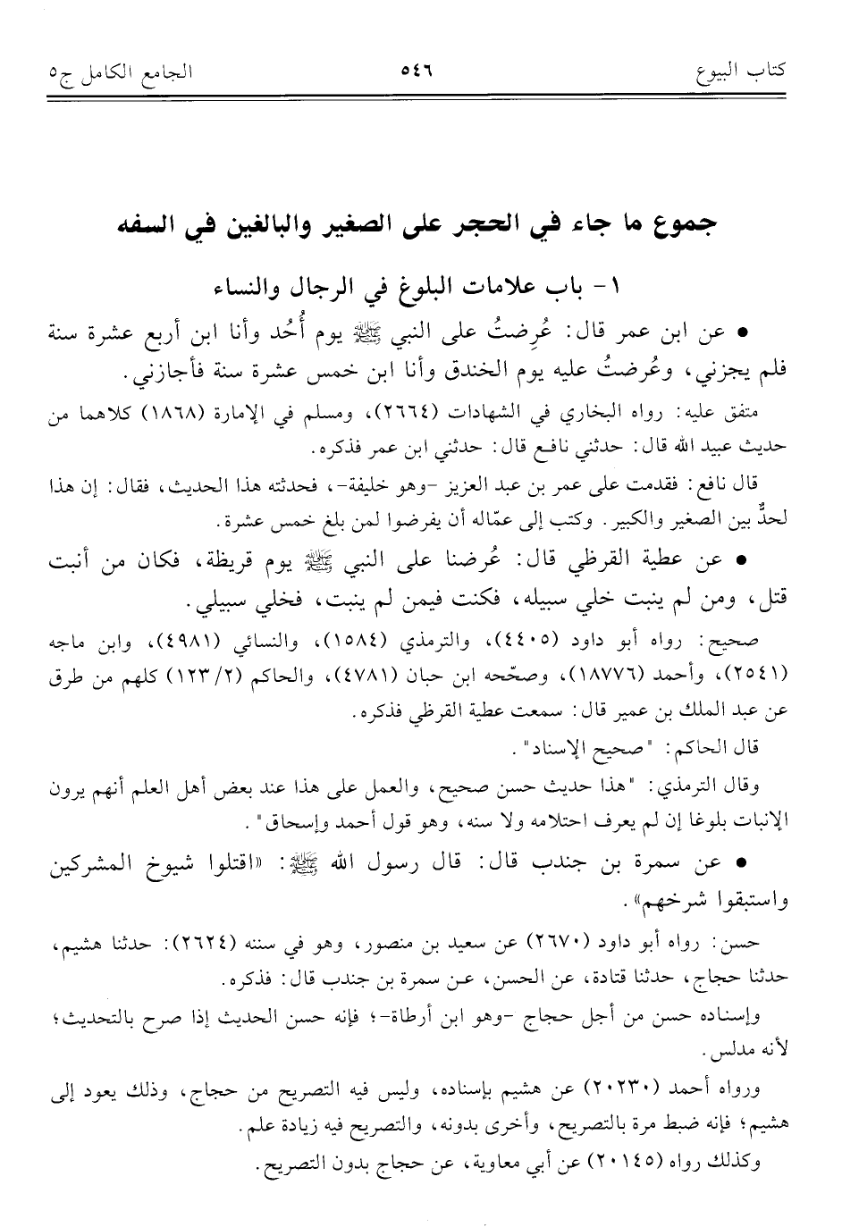 كتاب الجامع الكامل في الحديث الصحيح الشامل المرتب على أبواب الفقه (اسم الجزء: 5)