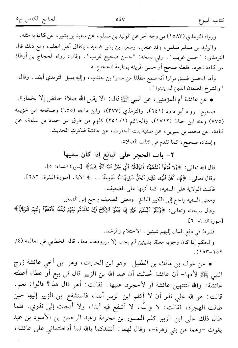 ٢ - باب الحجر على البالغ إذا كان سفيها