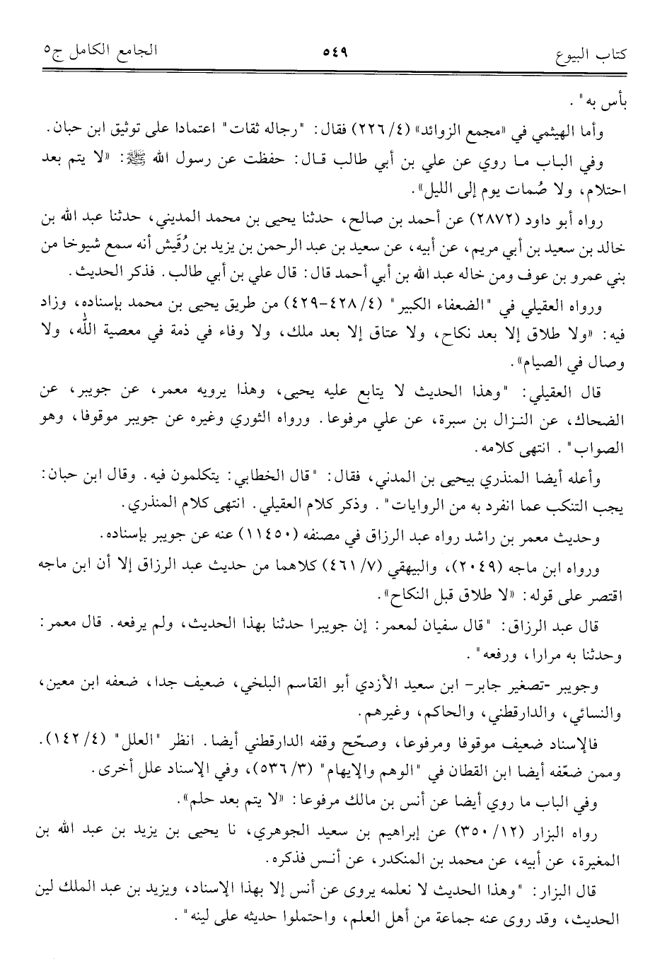 كتاب الجامع الكامل في الحديث الصحيح الشامل المرتب على أبواب الفقه (اسم الجزء: 5)