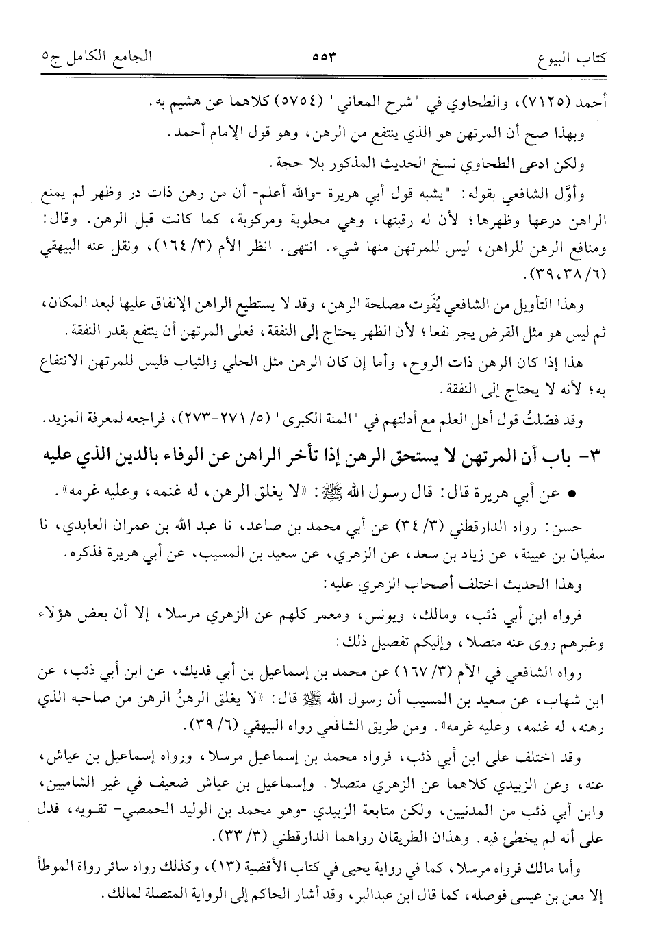 كتاب الجامع الكامل في الحديث الصحيح الشامل المرتب على أبواب الفقه (اسم الجزء: 5)
