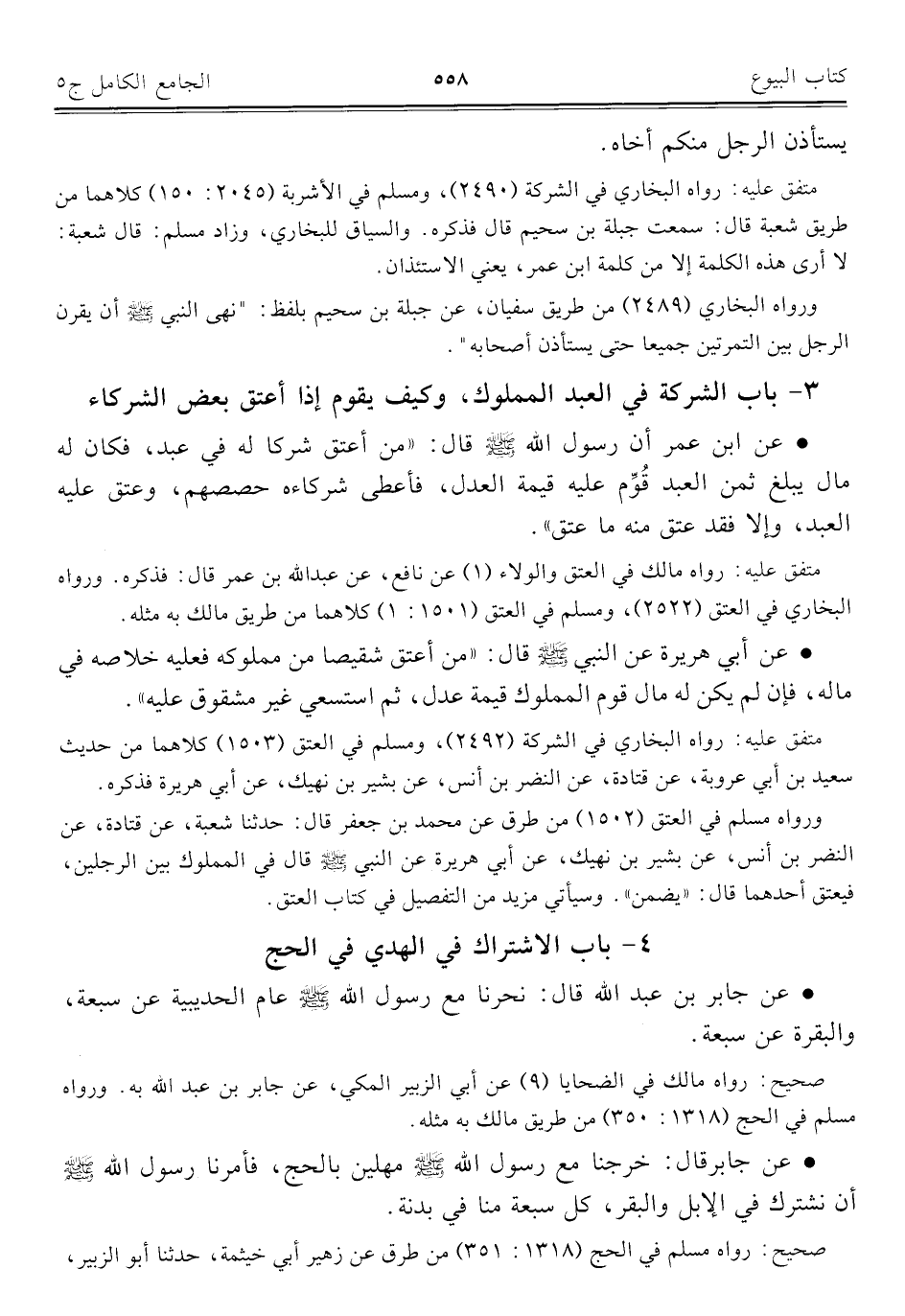 كتاب الجامع الكامل في الحديث الصحيح الشامل المرتب على أبواب الفقه (اسم الجزء: 5)