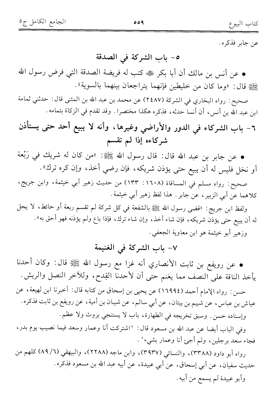 كتاب الجامع الكامل في الحديث الصحيح الشامل المرتب على أبواب الفقه (اسم الجزء: 5)