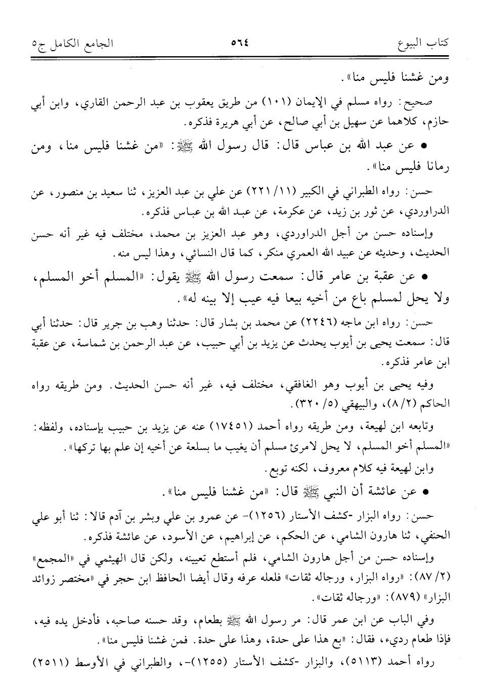 كتاب الجامع الكامل في الحديث الصحيح الشامل المرتب على أبواب الفقه (اسم الجزء: 5)