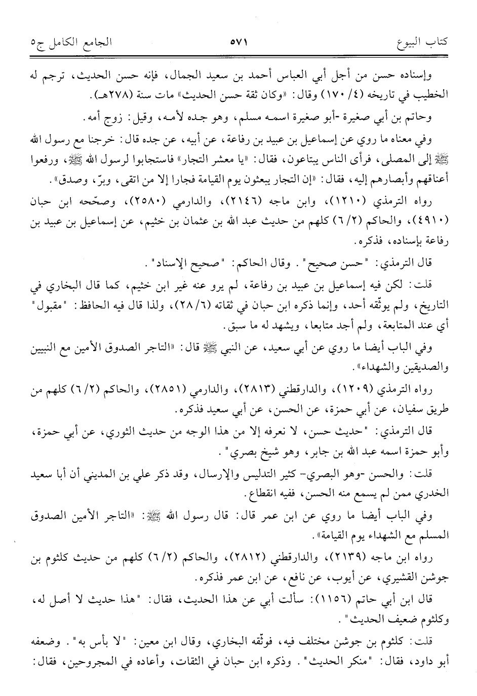 كتاب الجامع الكامل في الحديث الصحيح الشامل المرتب على أبواب الفقه (اسم الجزء: 5)