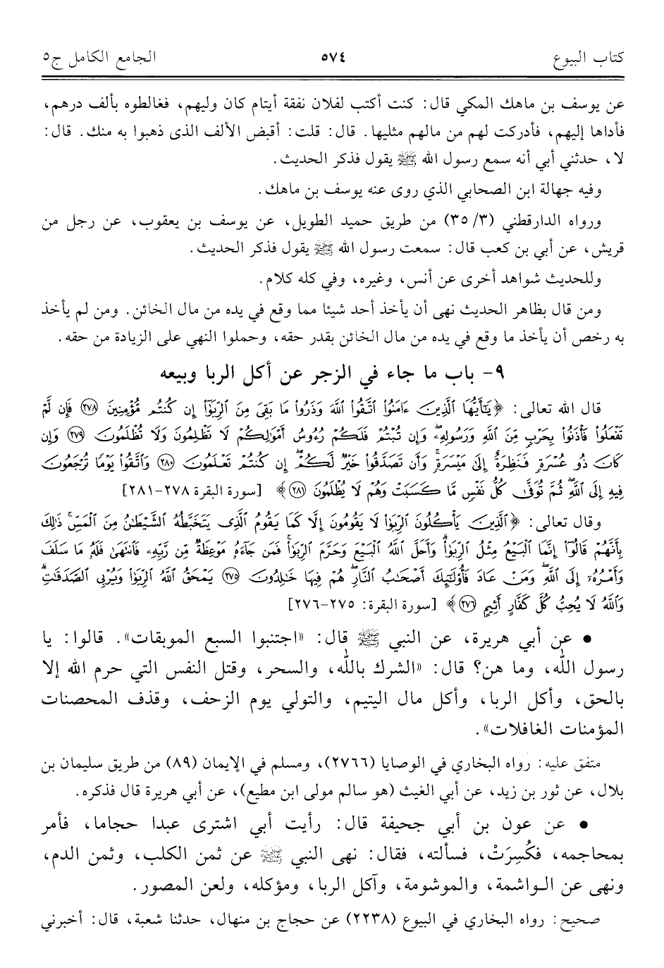 كتاب الجامع الكامل في الحديث الصحيح الشامل المرتب على أبواب الفقه (اسم الجزء: 5)