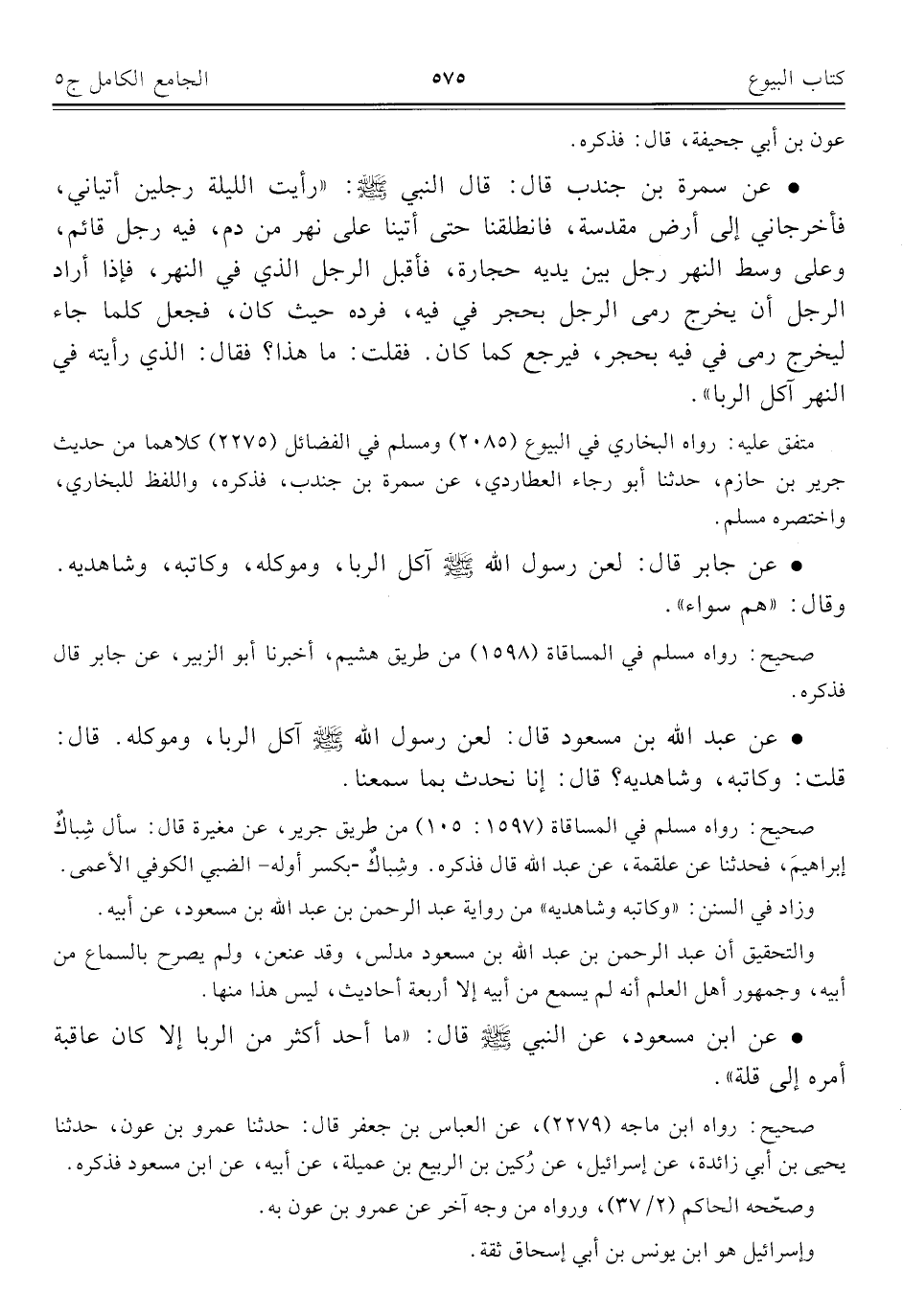 كتاب الجامع الكامل في الحديث الصحيح الشامل المرتب على أبواب الفقه (اسم الجزء: 5)