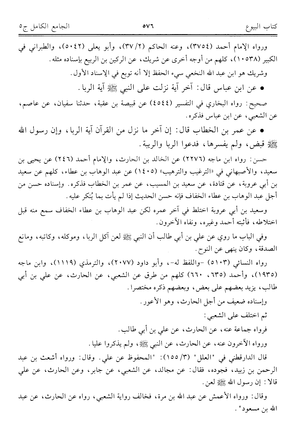 كتاب الجامع الكامل في الحديث الصحيح الشامل المرتب على أبواب الفقه (اسم الجزء: 5)