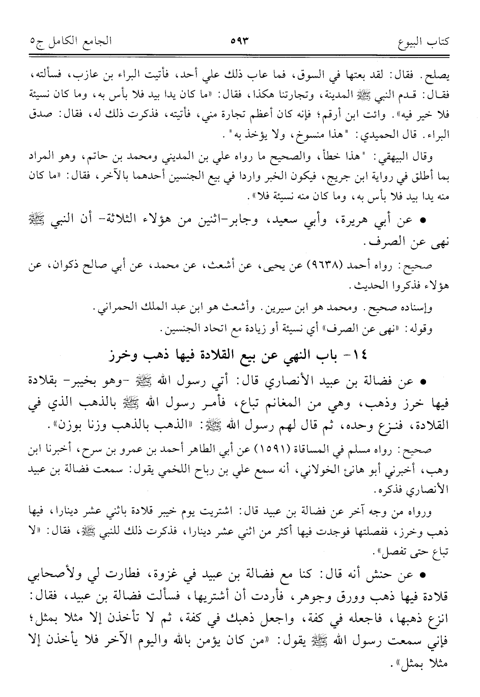 كتاب الجامع الكامل في الحديث الصحيح الشامل المرتب على أبواب الفقه (اسم الجزء: 5)
