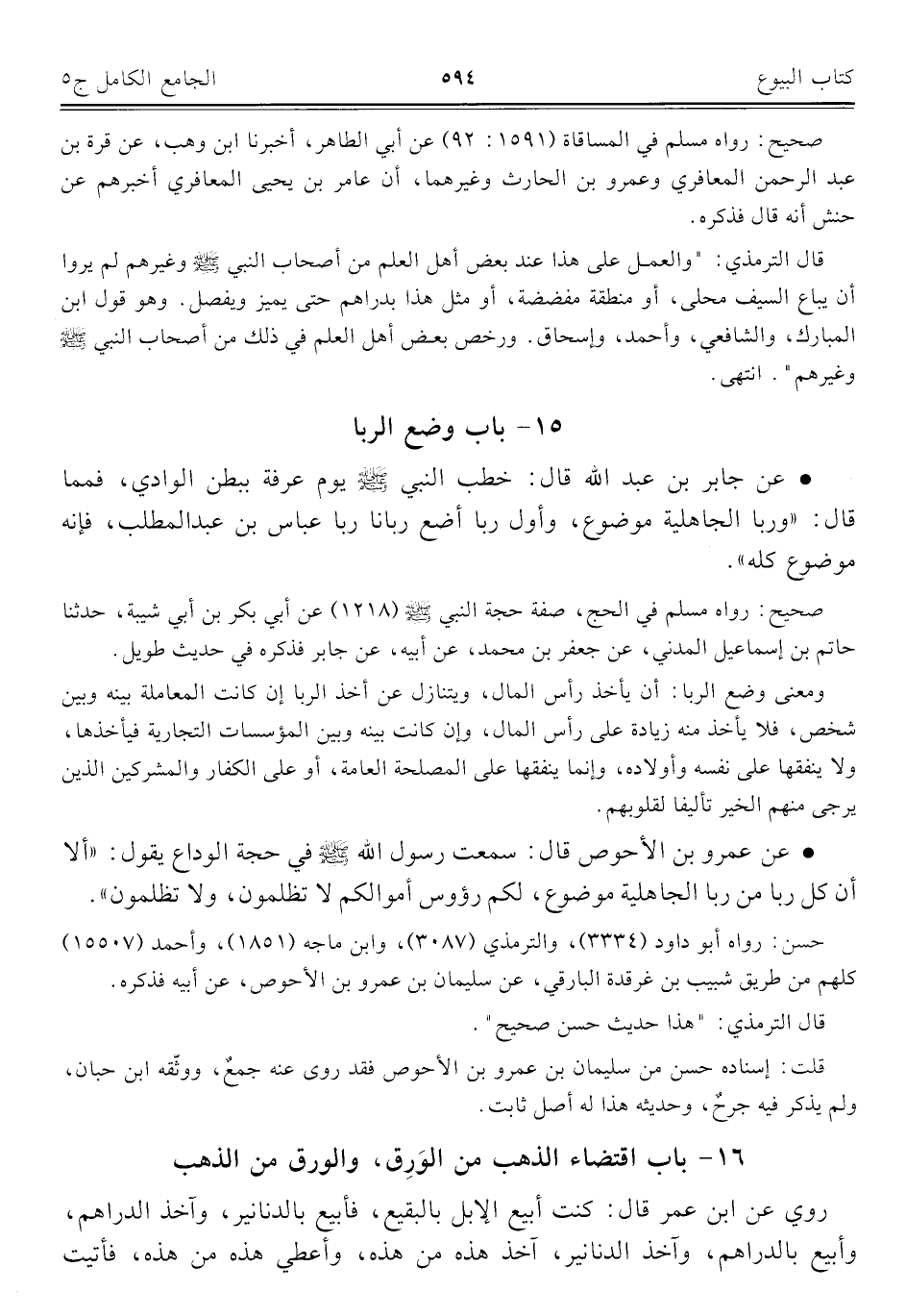 كتاب الجامع الكامل في الحديث الصحيح الشامل المرتب على أبواب الفقه (اسم الجزء: 5)