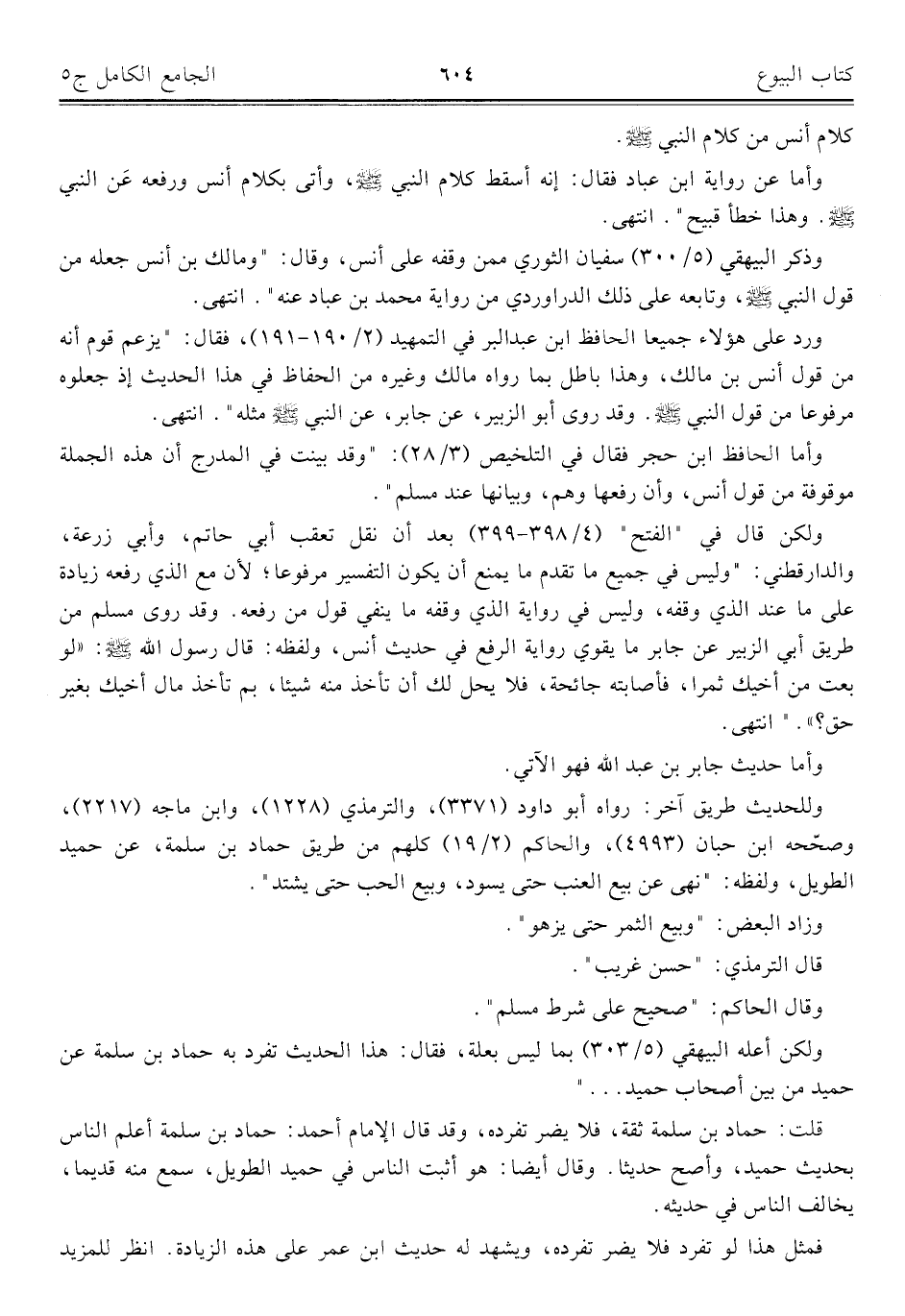 كتاب الجامع الكامل في الحديث الصحيح الشامل المرتب على أبواب الفقه (اسم الجزء: 5)