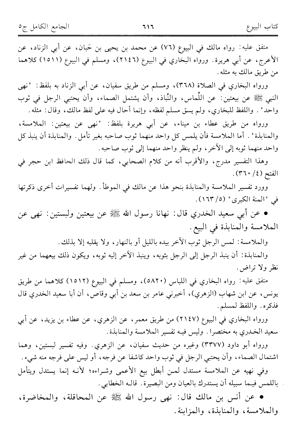 كتاب الجامع الكامل في الحديث الصحيح الشامل المرتب على أبواب الفقه (اسم الجزء: 5)