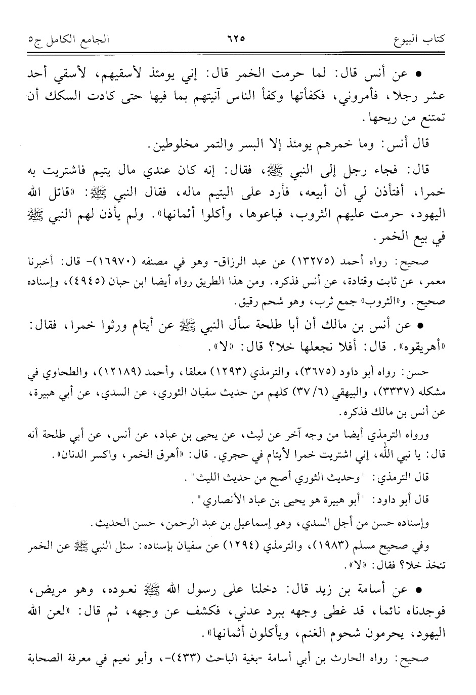 كتاب الجامع الكامل في الحديث الصحيح الشامل المرتب على أبواب الفقه (اسم الجزء: 5)
