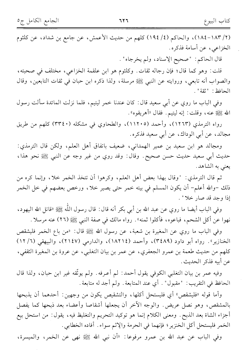 كتاب الجامع الكامل في الحديث الصحيح الشامل المرتب على أبواب الفقه (اسم الجزء: 5)