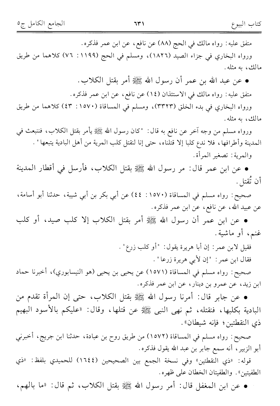 كتاب الجامع الكامل في الحديث الصحيح الشامل المرتب على أبواب الفقه (اسم الجزء: 5)