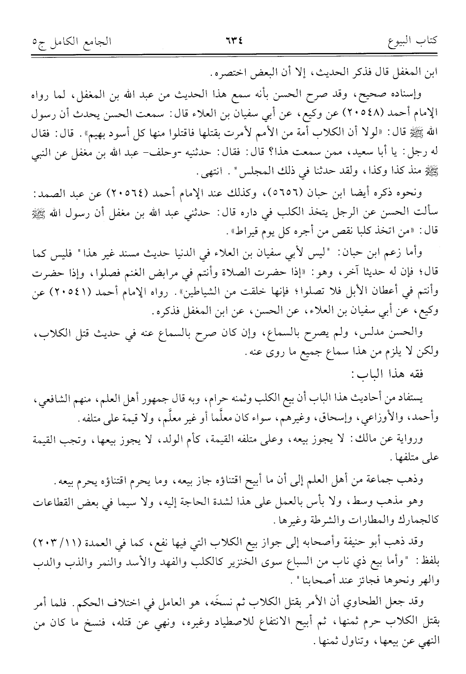 كتاب الجامع الكامل في الحديث الصحيح الشامل المرتب على أبواب الفقه (اسم الجزء: 5)