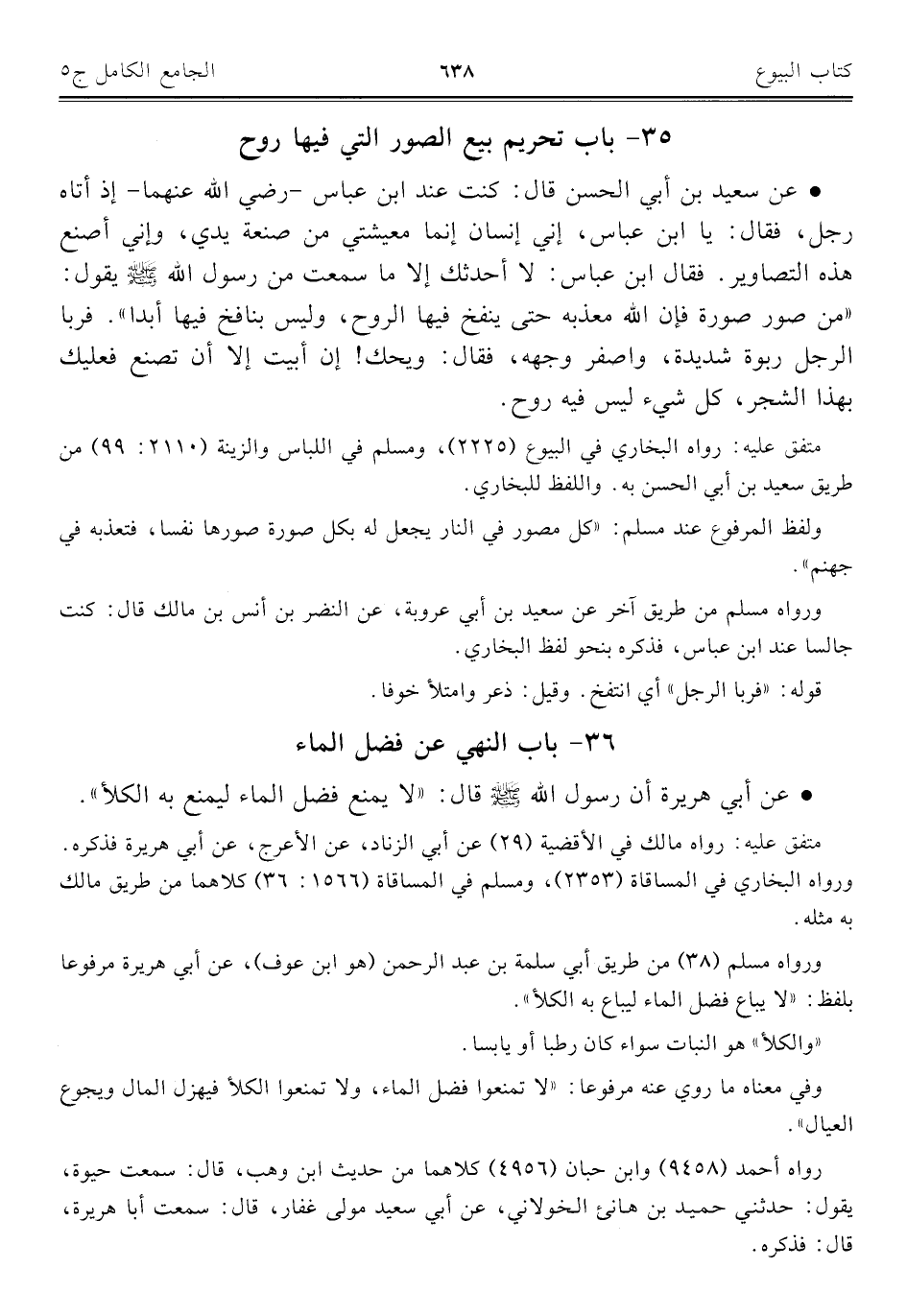 كتاب الجامع الكامل في الحديث الصحيح الشامل المرتب على أبواب الفقه (اسم الجزء: 5)