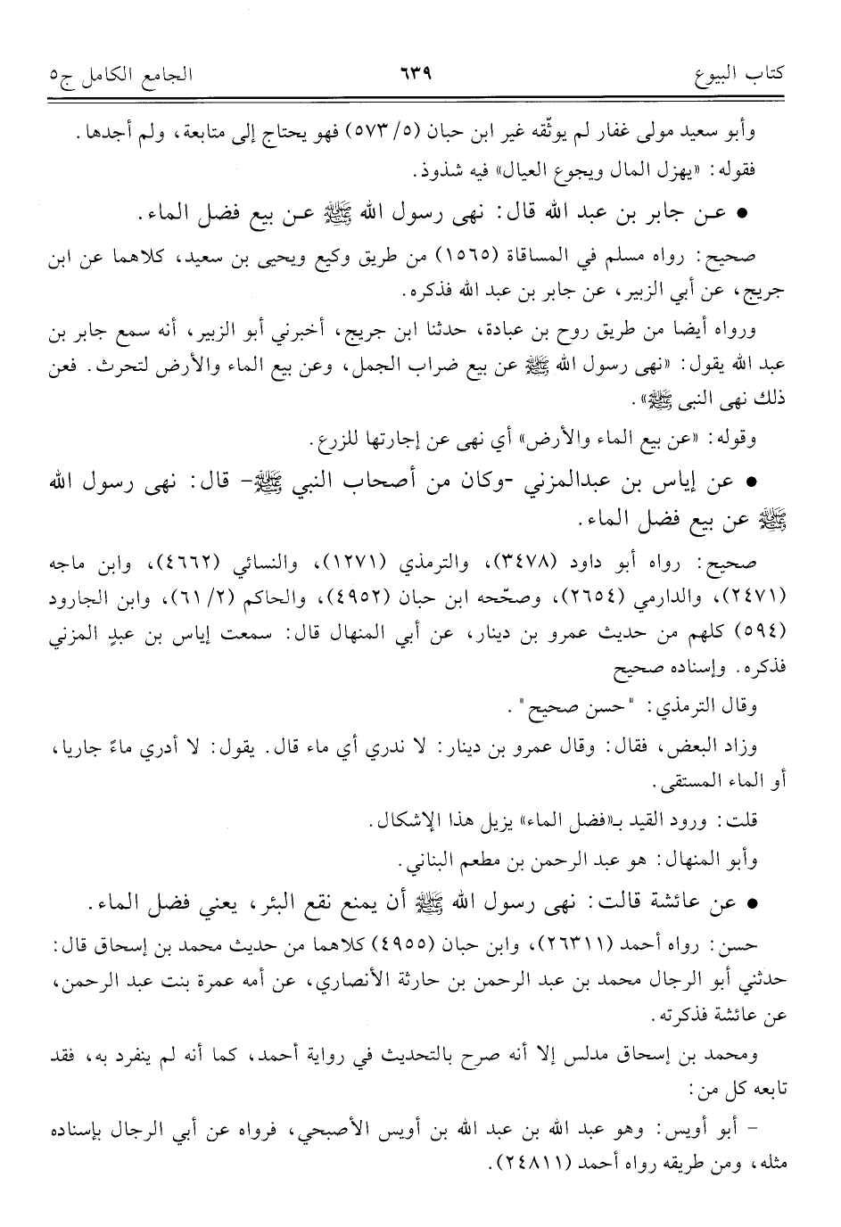 كتاب الجامع الكامل في الحديث الصحيح الشامل المرتب على أبواب الفقه (اسم الجزء: 5)