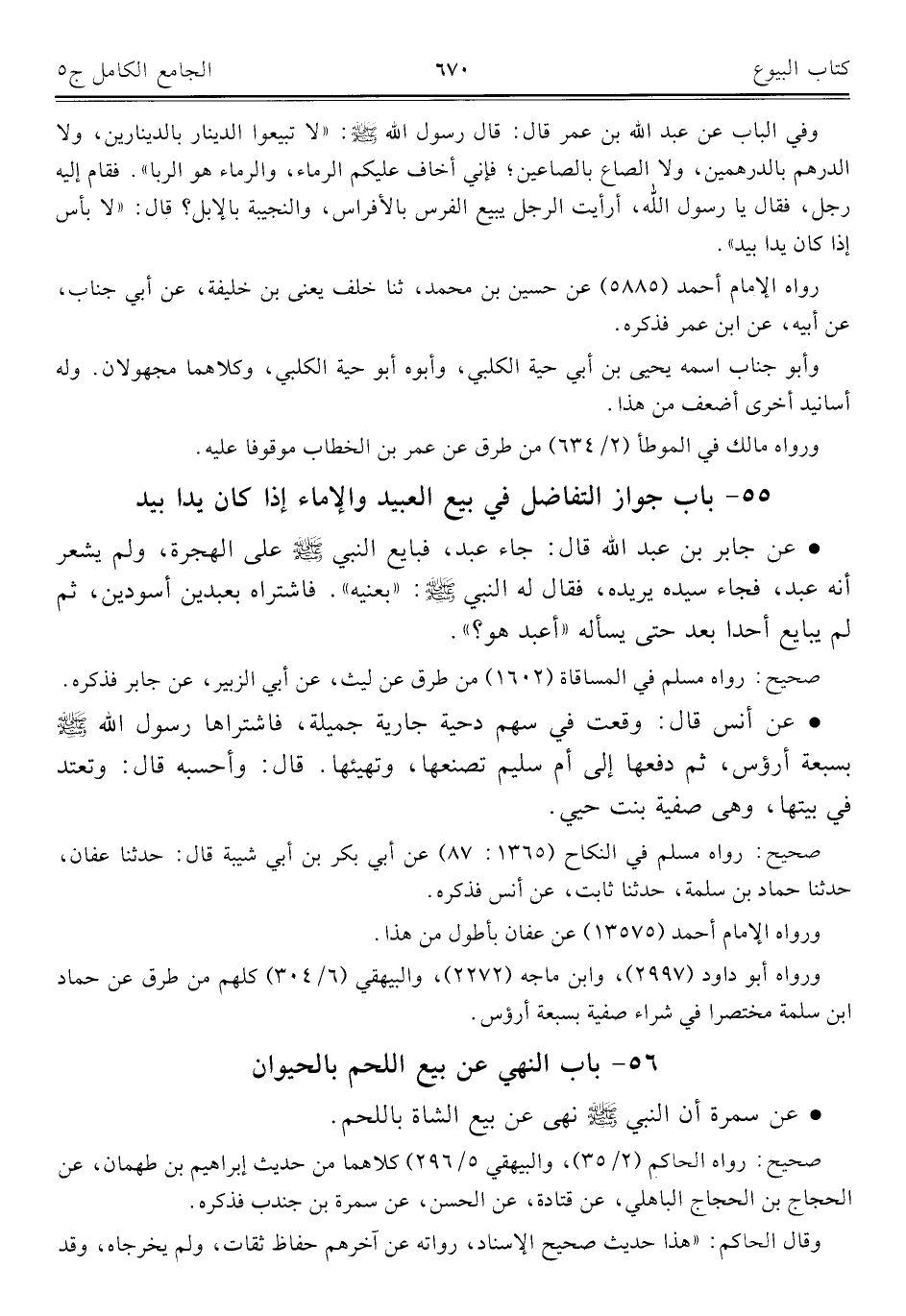 كتاب الجامع الكامل في الحديث الصحيح الشامل المرتب على أبواب الفقه (اسم الجزء: 5)
