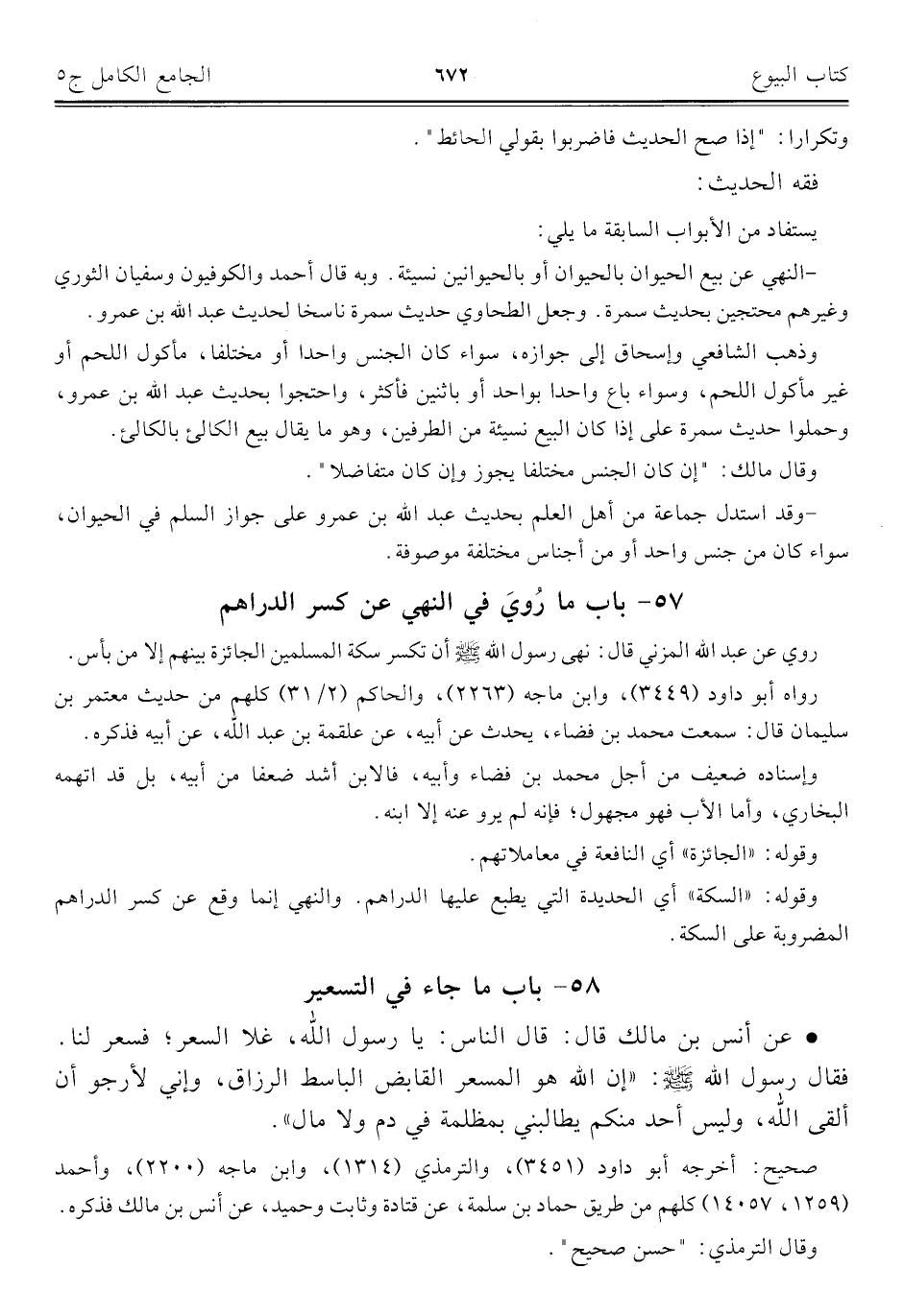 كتاب الجامع الكامل في الحديث الصحيح الشامل المرتب على أبواب الفقه (اسم الجزء: 5)
