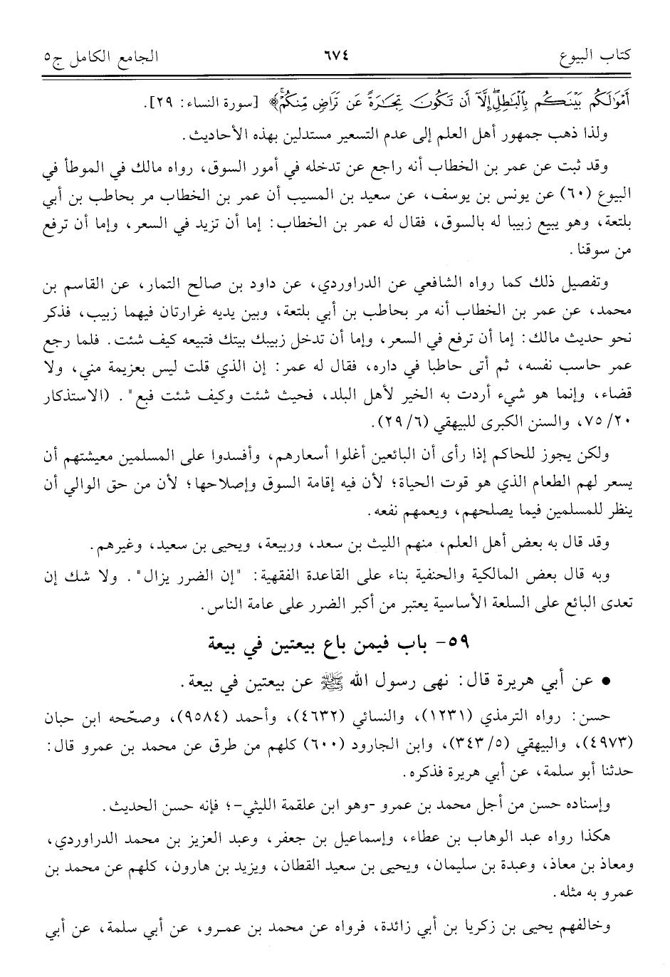 كتاب الجامع الكامل في الحديث الصحيح الشامل المرتب على أبواب الفقه (اسم الجزء: 5)