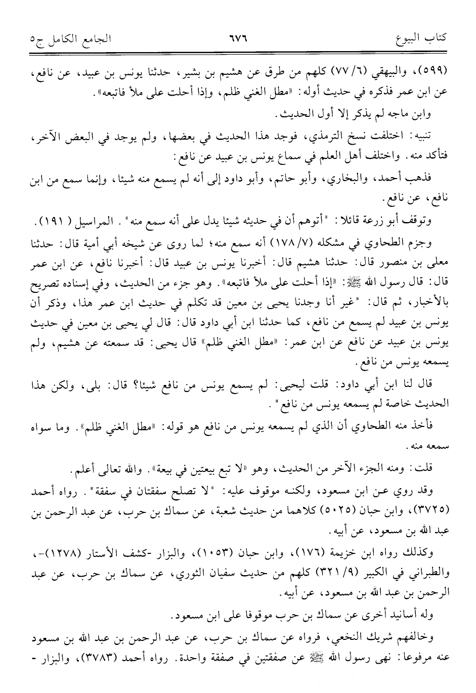 كتاب الجامع الكامل في الحديث الصحيح الشامل المرتب على أبواب الفقه (اسم الجزء: 5)