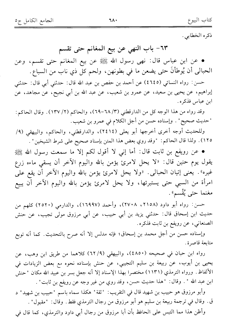 كتاب الجامع الكامل في الحديث الصحيح الشامل المرتب على أبواب الفقه (اسم الجزء: 5)