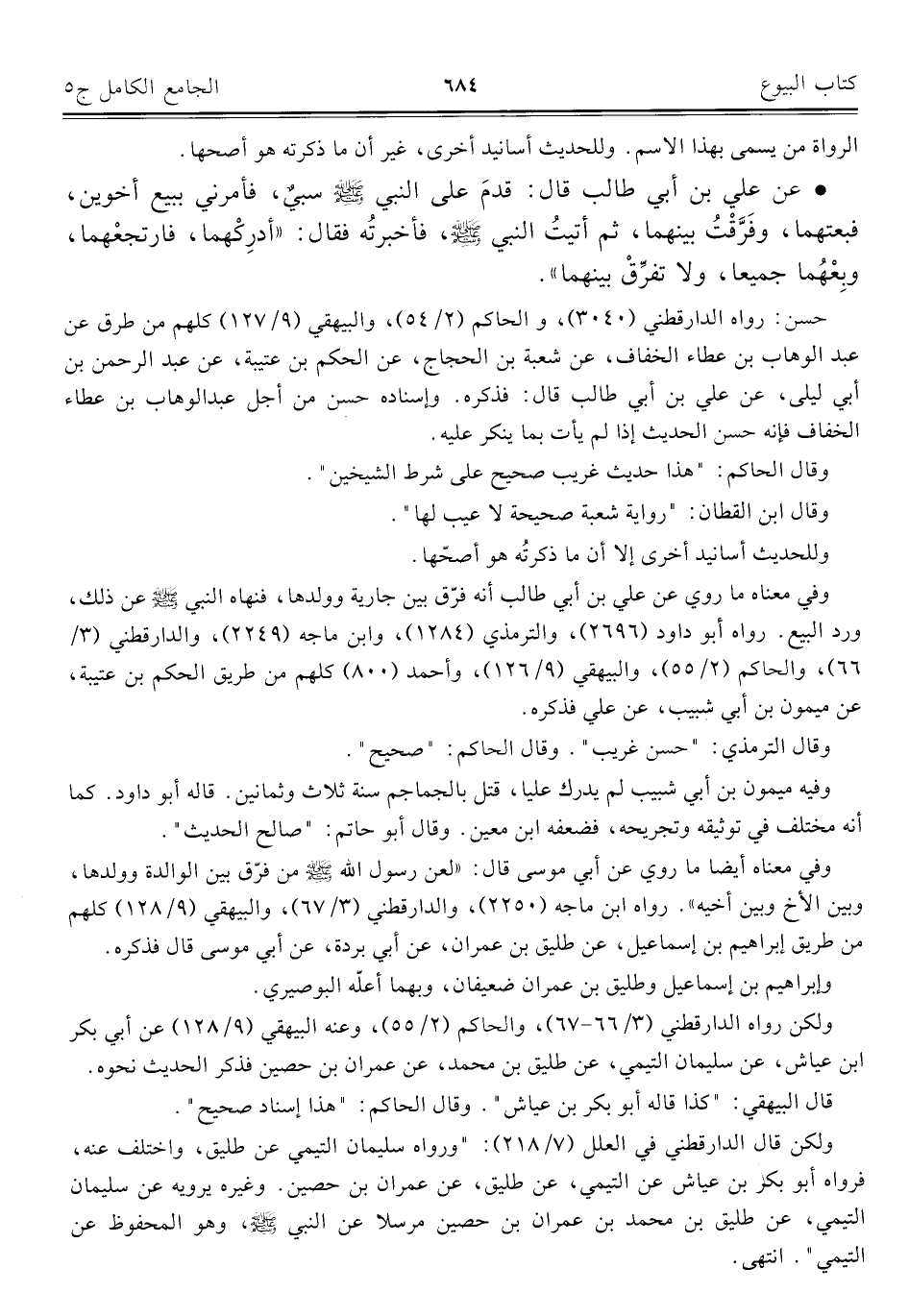 كتاب الجامع الكامل في الحديث الصحيح الشامل المرتب على أبواب الفقه (اسم الجزء: 5)