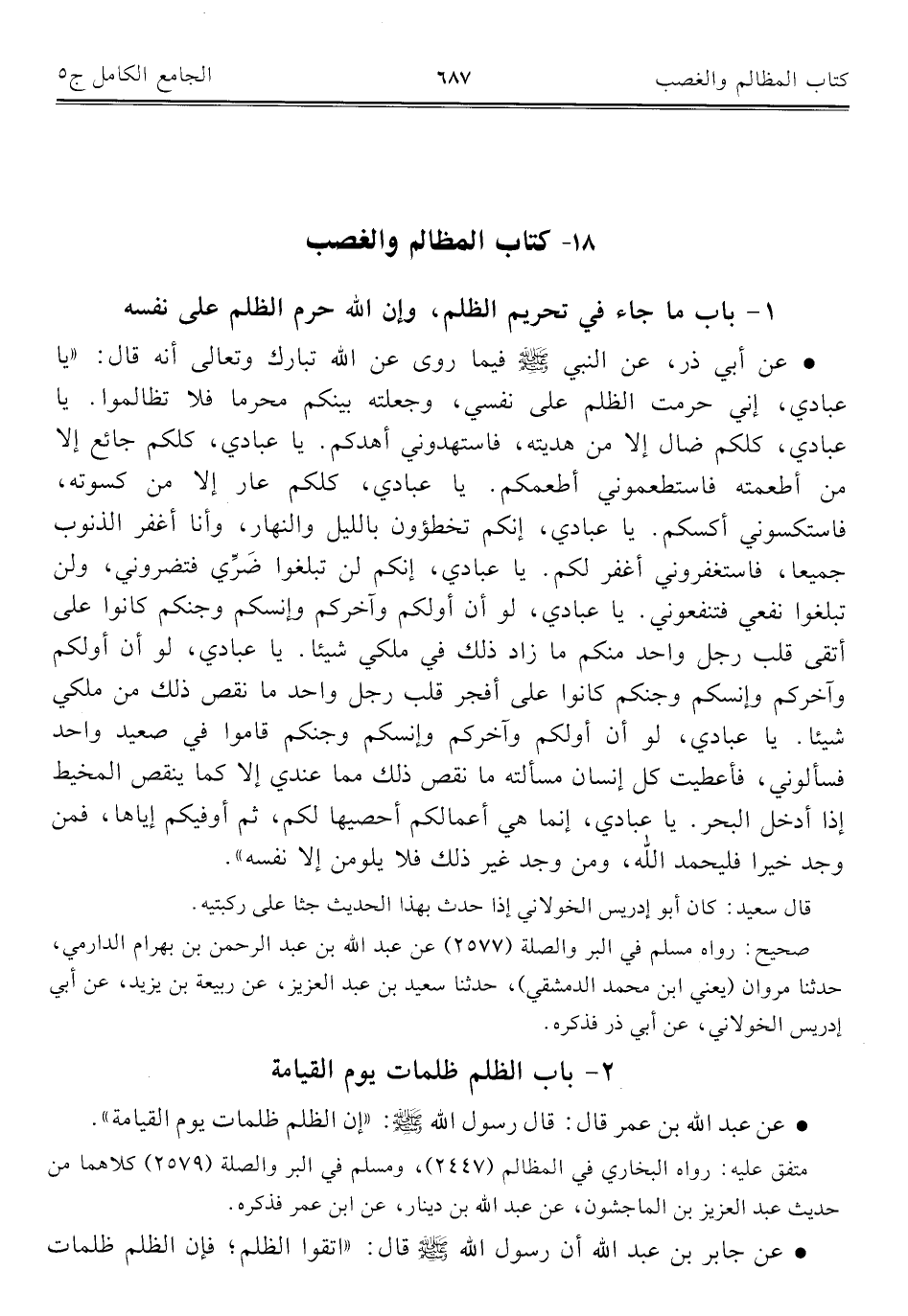 ١ - باب ما جاء في تحريم الظلم، وإن اللَّه حرم الظلم على نفسه