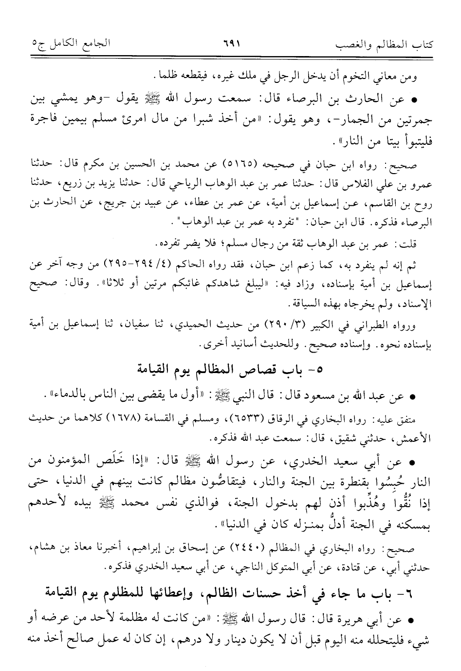 ٥ - باب قصاص المظالم يوم القيامة
