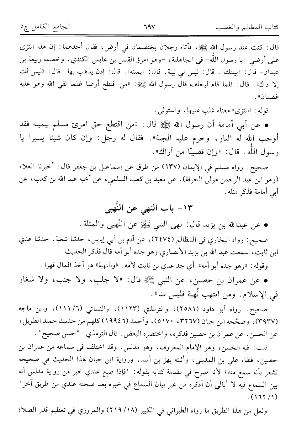 كتاب الجامع الكامل في الحديث الصحيح الشامل المرتب على أبواب الفقه (اسم الجزء: 5)