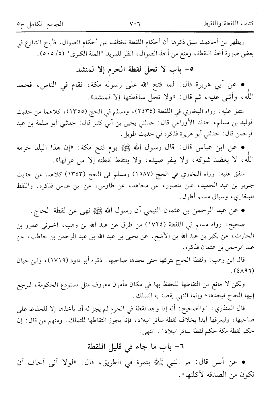 ٥ - باب لا تحل لقطة الحرم إلا لمنشد