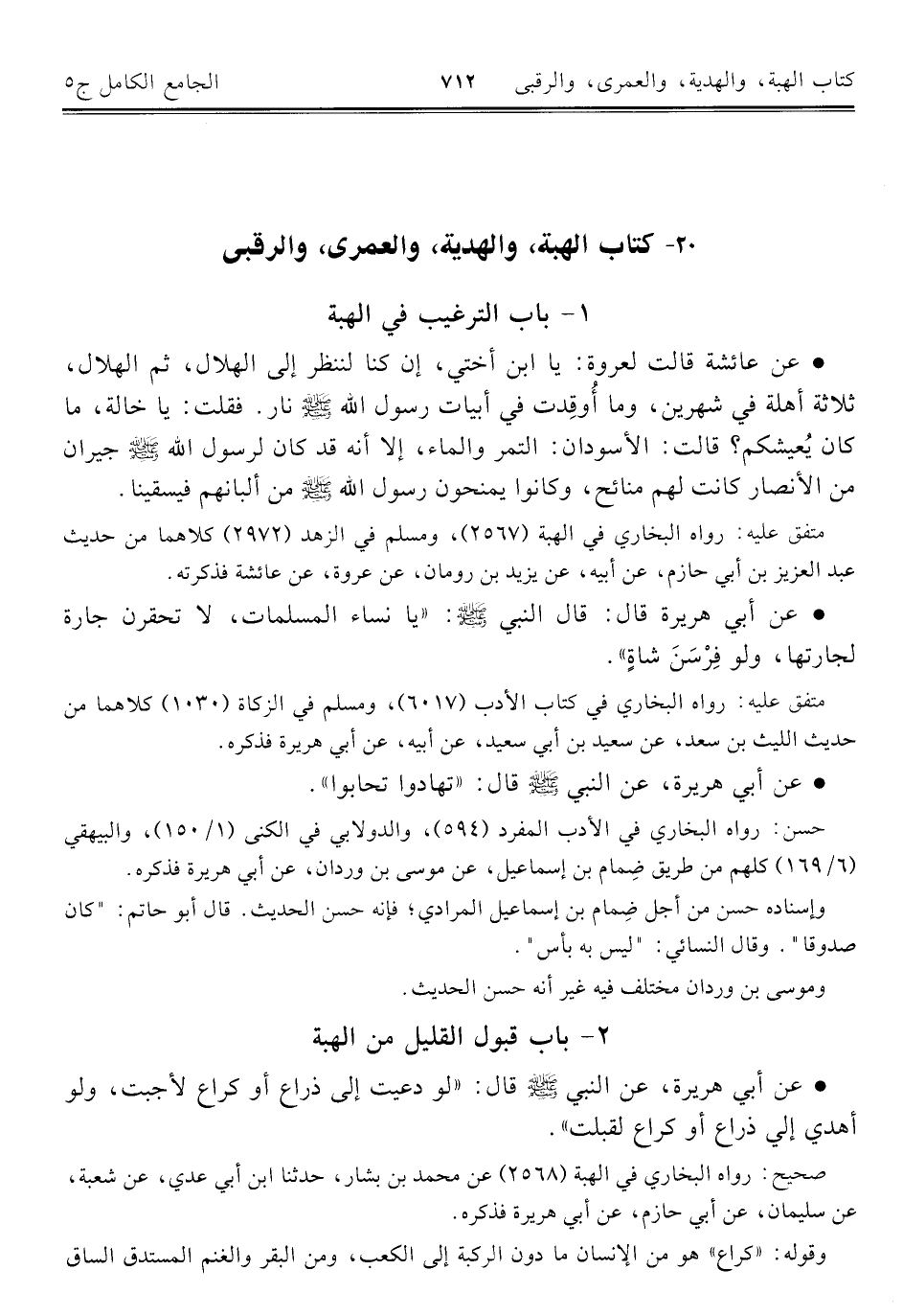 ٢٠ - كتاب الهبة، والهدية، والعمرى، والرقبى