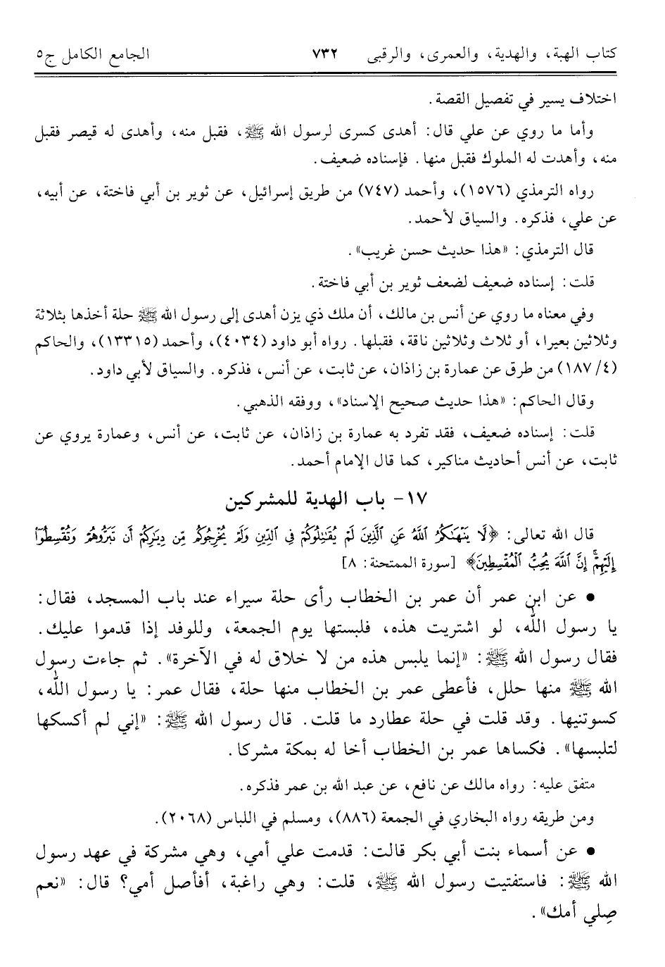 كتاب الجامع الكامل في الحديث الصحيح الشامل المرتب على أبواب الفقه (اسم الجزء: 5)
