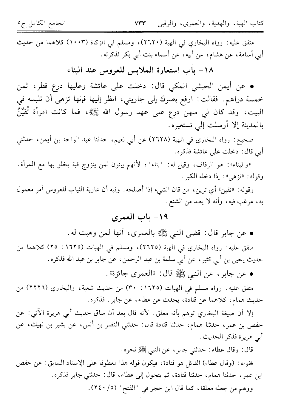 كتاب الجامع الكامل في الحديث الصحيح الشامل المرتب على أبواب الفقه (اسم الجزء: 5)
