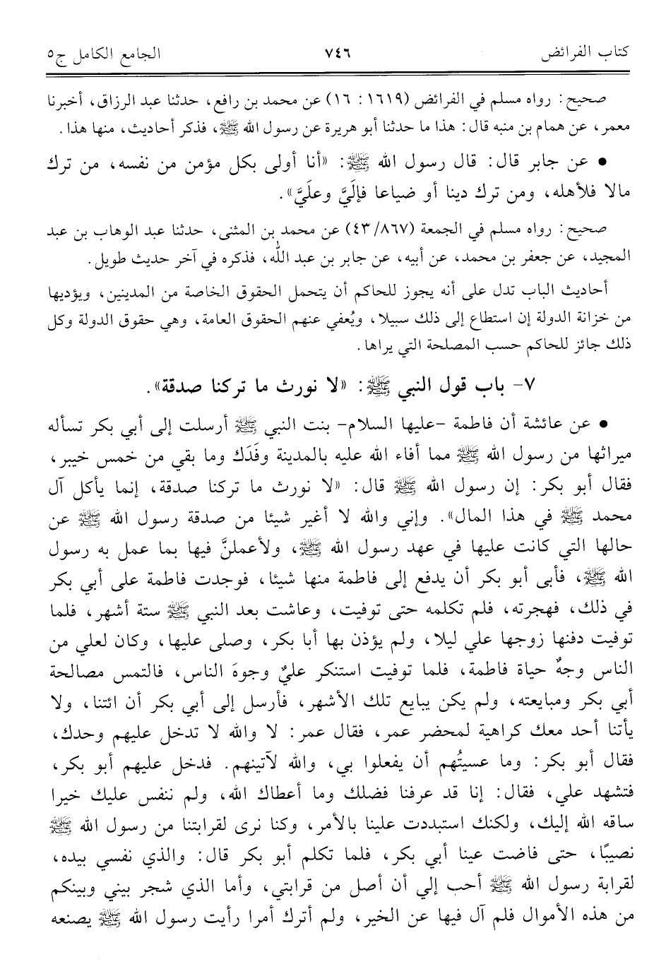 كتاب الجامع الكامل في الحديث الصحيح الشامل المرتب على أبواب الفقه (اسم الجزء: 5)