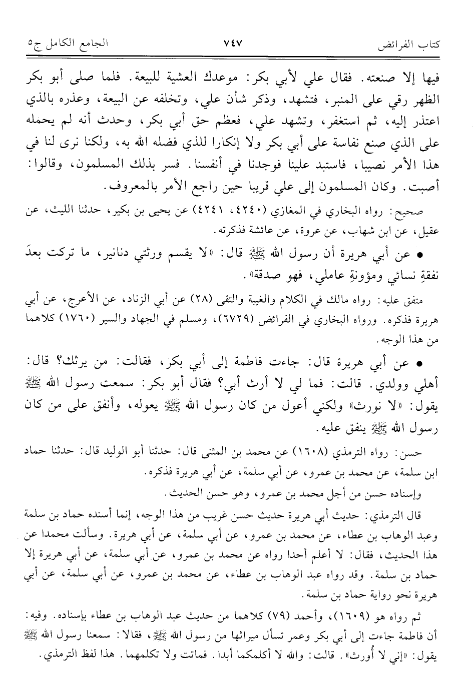 كتاب الجامع الكامل في الحديث الصحيح الشامل المرتب على أبواب الفقه (اسم الجزء: 5)