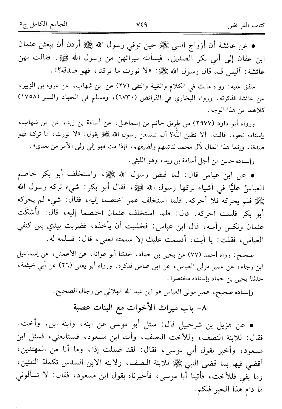 كتاب الجامع الكامل في الحديث الصحيح الشامل المرتب على أبواب الفقه (اسم الجزء: 5)