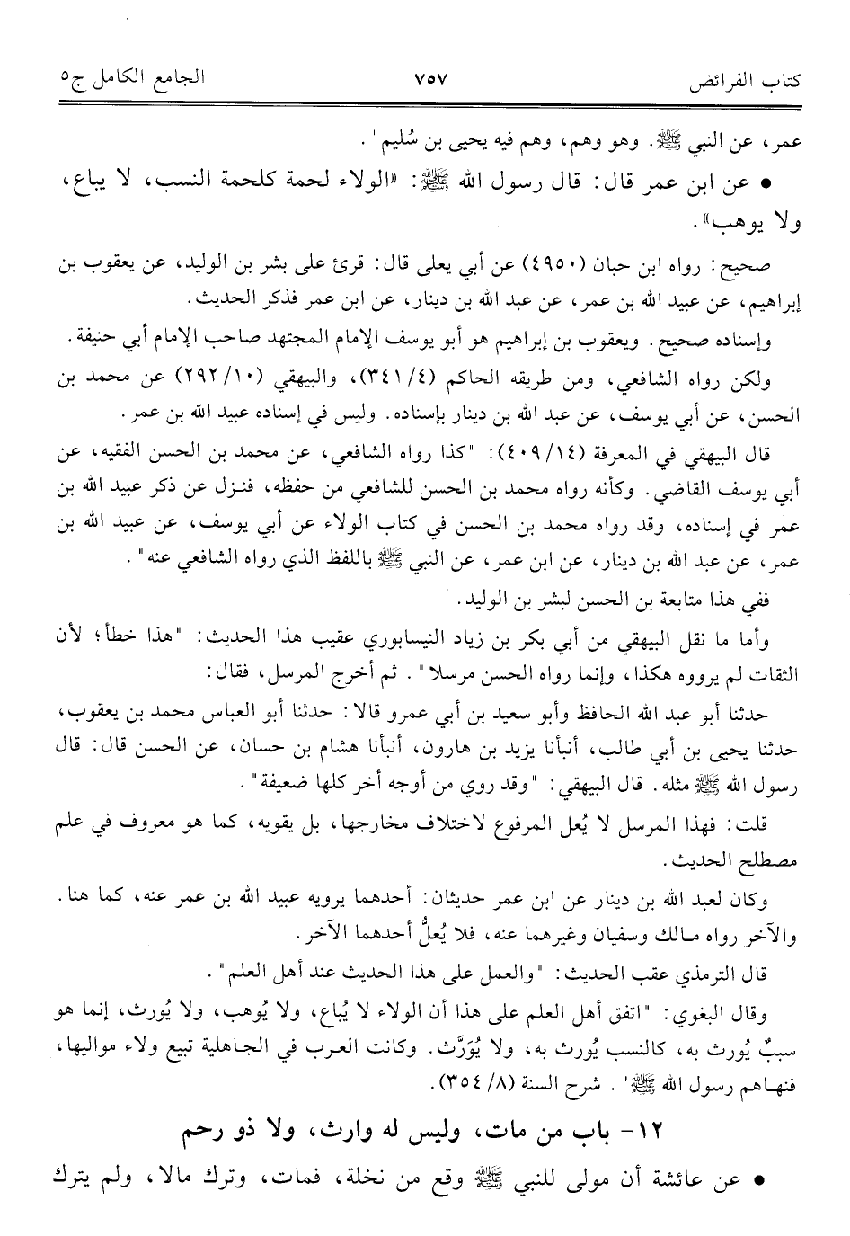 كتاب الجامع الكامل في الحديث الصحيح الشامل المرتب على أبواب الفقه (اسم الجزء: 5)